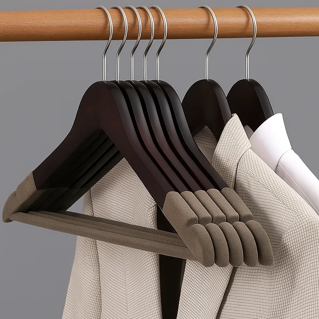 Оксамитові вішалки виготовляються з міцного дерева, що забезпечує їх тривалий термін служби
