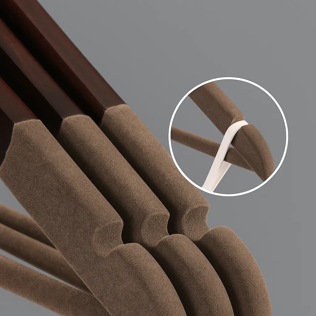 М'яка оксамитова поверхня вішалки запобігає зісковзанню одягу, що особливо корисно для легких або слизьких тканин, таких як шовк або атлас